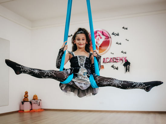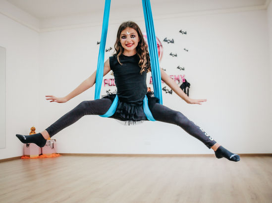 Our terms are packed with engaging activities that allow students to explore new aerial skills while having a blast. They learn the basics of hoop, sling & silks whilst trying new poses, stretches, and drops, all in a safe environment.